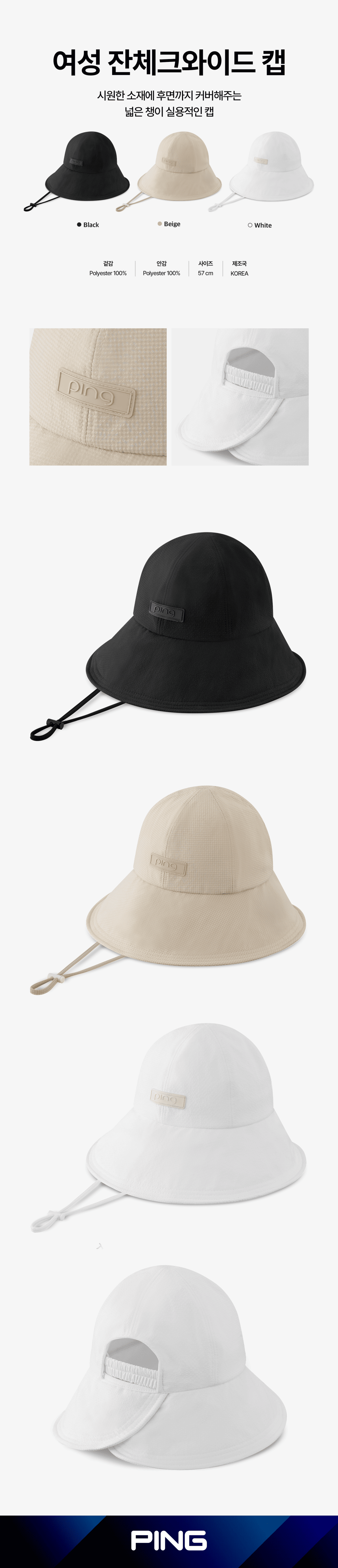 여성 잔체크와이드 캡